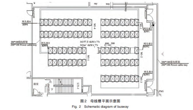 4) 空間布置母線槽可節省配電柜或列頭柜占用的空間,可避免使用電纜,從而減少布線的困難,以圖1為例,可節約6個列頭柜空間。