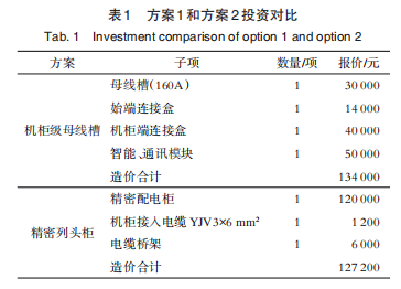 針對方案1和方案2不同機柜末端配電方案,兩者的投資造價對比如下,如附表1所示。