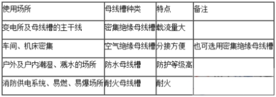 按照不同的運用場所選擇合適母線槽,見表1