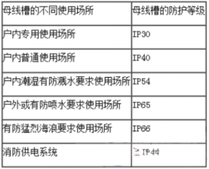 母線槽的防護等級應根據不同的運用場所進行確認,見表2