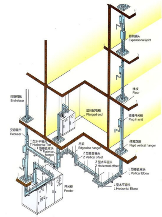 前端母線,為電源引入單元,可直接與變壓器或低壓配電屏銜接。變容量節(jié),為母線改換容量時的過渡節(jié)。
