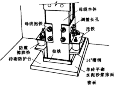 4.5封閉式母線槽筆直安裝。沿墻或柱子處,應做固定支架,過樓板處應加裝防震安裝,并做防水臺(圖7)。